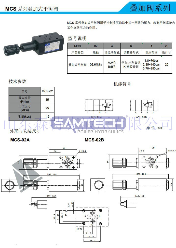 疊加閥MVCS-03B液壓疊加式液控單向閥 疊加閥 疊加式平衡閥 抗衡閥